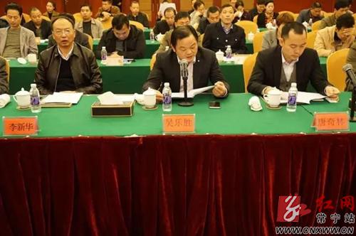 图为市委副书记、代理市长吴乐胜作创建省级卫生城市工作汇报。
