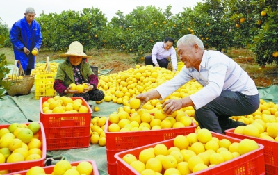 11月16日,宁远县太平镇白土村,果农在采摘脐橙、分拣装箱准备外运。近年来,该县加大脐橙品种更新力度,突出病虫害绿色防控,让产品实现绿色、无公害,天然、有营养。目前,全县3万亩脐橙进入盛果期。乐水旺 房辉胜 摄影报道
