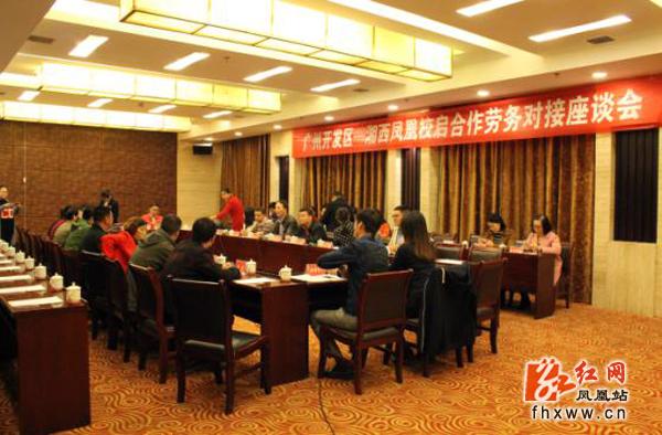 红网凤凰县分站11月18日讯(分站记者 黄亮力 通讯员 韩杰 石亮友)11月18日,记者从湖南省凤凰县转移就业脱贫工程指挥部办公室获悉,昨日下午6时,“广州开发区——湘西凤凰校启合作劳务对接座谈会”在凤凰县天下凤凰大酒店湘西厅举行,凤凰县与广州开发区劳动和社会保障局成功签订劳务输出合作协议书。