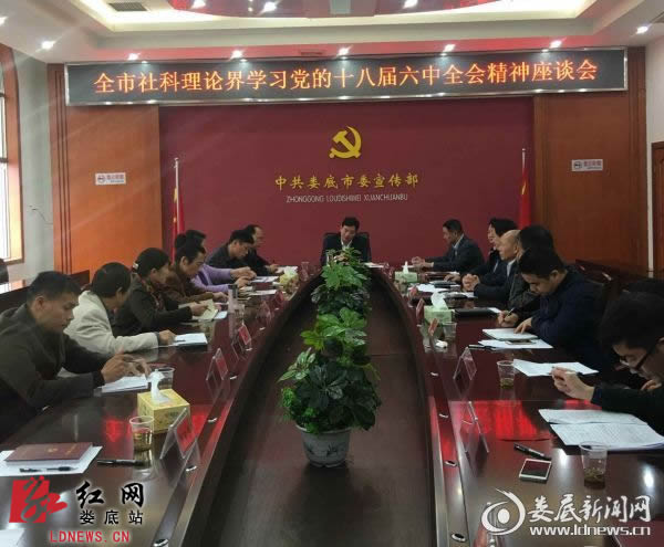 红网娄底分站11月18日讯(分站记者 吴亮)11月16日,湖南娄底社科理论界召开座谈会,学习贯彻党的十八届六中全会精神。来自市委宣传部、市委党校、娄底职业技术学院、人文科技学院等有关部门和高校的专家学者作了经验交流。市委常委、宣传部部长吴建平出席会议并讲话。