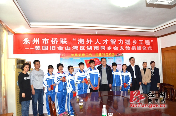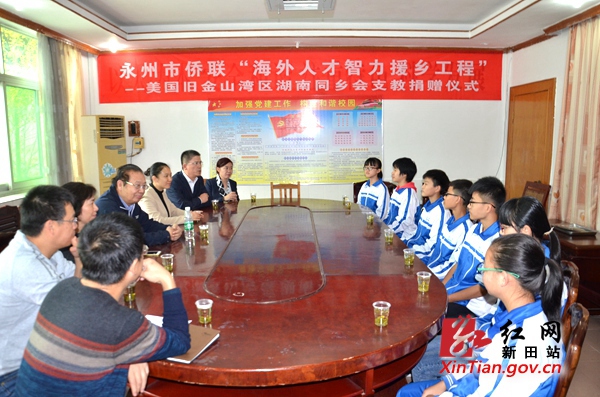 红网新田县分站11月18日讯(分站记者 唐人杰)11月16日,美籍华人科学家黄厚斌教授代表“美国旧金山湾区湖南同乡会”来到湖南省新田县,为7名高一贫困学生每人发放了2500元爱心助学款,并与他们建立长期联系,持续关注、关心他们的成长。这是该会在永州市结对支教的首批学生。