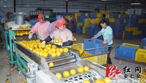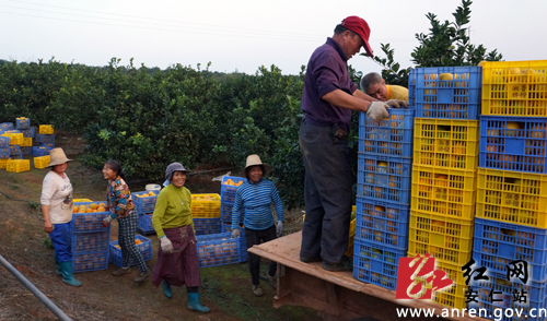 红网安仁县分站11月20日讯(通讯员 何炳文 何超)11月18日,笔者走进湖南省安仁县由山东青年阳凯华种植的5000多亩“纽荷尔”“罗伯逊”优质脐橙基地,映现在眼中的是120多名农民一边采摘分拣过秤,一边装上大货车的忙碌景象。
