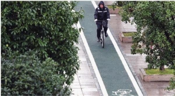 11月22日上午,长沙市杉木冲西路,市民骑车行驶在自行车专用道上。目前,长沙城区26条自行车专用道改造工程全部完工,总里程达90.8公里。交警部门近期也对机动车占用自行车道的行为进行专项整治,以营造良好的骑车环境。未来三年,该市还将沿城市主次干道和南北横线及湘江、浏阳河、沩水河等主要水系,建设1000公里自行车道。