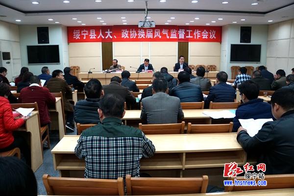 红网绥宁县分站11月25日讯(分站记者 王伟琪)11月24日,湖南省绥宁县在县委四楼会议室召开人大、政协换届风气监督工作会议。绥宁县委常委、纪委书记唐远伟,绥宁县委常委、组织部长肖杰华出席会议并讲话。绥宁县政协副主席杨先光主持会议,绥宁县人大、政协会议换届风气监督组全体工作人员参加会议。