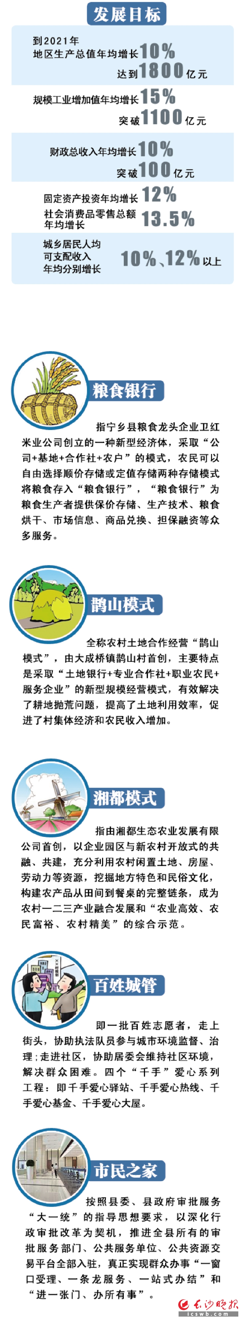 宁乡的回答铿锵有力:高举中国特色社会主义伟大旗帜,全面贯彻落实党的十八大和十八届三中、四中、五中、六中全会精神,深入贯彻习近平总书记系列重要讲话精神,紧紧围绕“五位一体”总体布局和“四个全面”战略布局,牢固树立创新、协调、绿色、开放、共享发展理念,着力打造内陆开放高地、西线工业走廊、全域旅游景区和群众幸福家园,担当国家中心城市副中心历史使命,挺进全国二十强,打造一流中等城市。