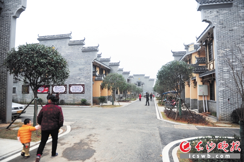 一到炭河古城,便看到一排崭新的仿古建筑群鳞次栉比,两边绿茵苍翠,丹桂芬芳。田菊花家4口人,按照人均25平方米的分配原则,分到了一套100平方米左右的新房。她告诉记者,之前自己在长沙打零工月收入不到2000元。搬家后,当地政府不仅为他们提供了免费的家具家电,连水费、电费、收视费和网络费也是5年全免。不仅如此,安置点对面便是划给易地扶贫搬迁户的菜地,吃菜不愁。