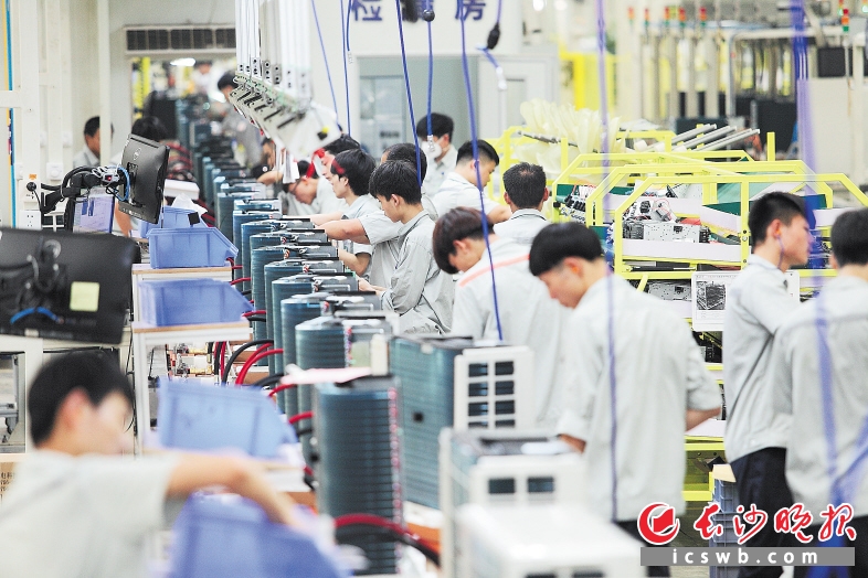 格力宁乡生产基地,繁忙的生产线。长沙晚报记者 陈飞 摄