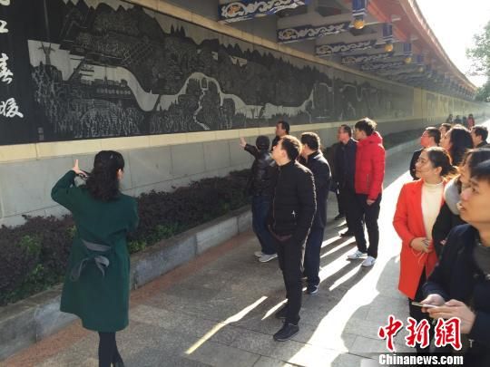 名博名微们参观闻名遐迩的常德诗墙。向一鹏 摄