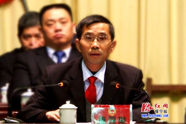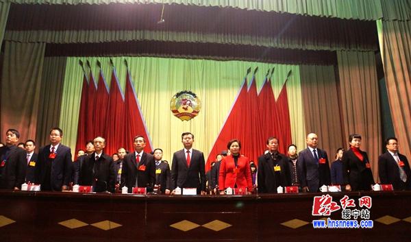 红网绥宁县分站11月29日讯(分站记者 王伟琪 秦玲玲)11月29日上午,政协湖南省绥宁县第九届委员会第一次会议在全体委员和与会同志共同努力下,圆满完成各项议程,在县电影院胜利闭幕。县政协副主席杨先光主持大会闭幕式,新当选政协主席唐国瑚讲话。