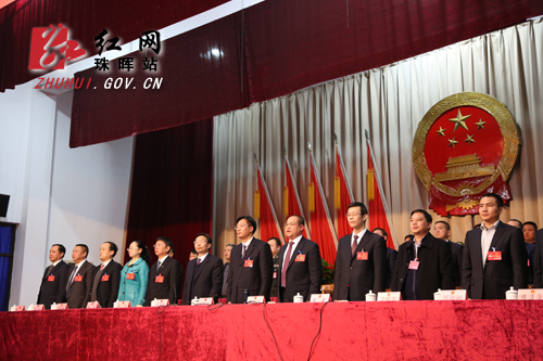 新当选的区第四届人大常委会主任黄常耿代表新一届区人大及其常委会庄严承诺,在今后的工作中,新一届区人大及其常委会将以崭新姿态、极大热情投入到珠晖民主法治建设和经济社会发展的时代洪流中去,坚持党的领导,绝不动摇;依法履职行权,绝不含糊;服务经济发展,绝不减力;加强自身建设,绝不停步。