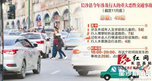 记者从长沙县公安局交警大队获悉,截至11月底,今年以来长沙县辖区共发生涉及行人的重大恶性交通事故49起,也就是说几乎平均每个星期都有行人在交通事故中受重伤甚至死亡。