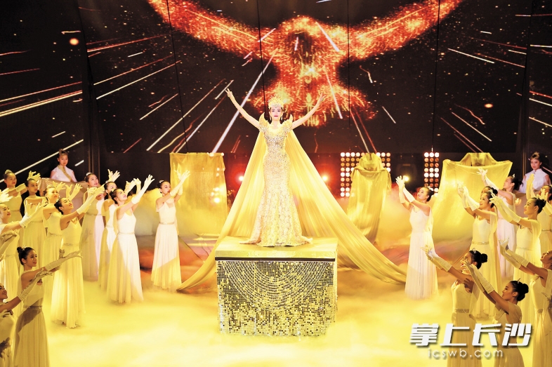 马栏山创意集聚区定位“智慧引领之文化创意公园城市”,以文化与高科技、互联网融合发展为路径,提升长沙“世界媒体之都”品牌影响力,建设湖南文化强省新地标。图为10月14日晚,第28届中国电视金鹰奖暨第11届中国金鹰电视艺术节开幕式上,金鹰女神惊艳亮相。 长沙晚报记者 黄启晴 摄