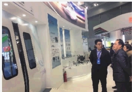 中国(长沙)国际轨道交通博览会暨高铁经济论坛上,湖南省科技厅领导前往展位视察由宁波时代生产的车辆门。