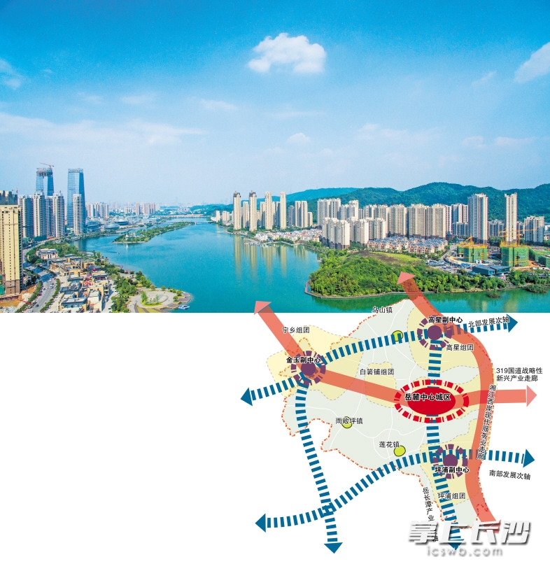 新区经济发展局相关负责人表示,“一主”即岳麓中心城区,由梅溪湖国际新城、麓谷科技新城、岳麓山大学城、滨江新城、市委市政府行政服务区等5个功能区块组成,打造长沙“西中心”。“三副”即北部高星副中心,由望城高塘岭组团、滨水新城、望城经开区等3个功能区块组成;西部金玉副中心,由宁乡玉潭组团、宁乡高新区、沩东新城、宁乡经开区等4个功能区块组成;南部坪浦副中心,由洋湖生态新城、大王山(观音港)旅游度假区、岳麓工业集中区等3个功能区块组成。“多点”即白箬铺、雨敞坪、莲花、乌山、夏铎铺镇等重要的节点城镇。
