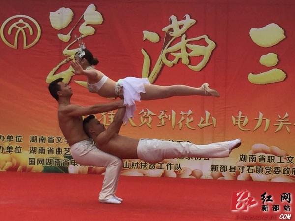 红网新邵县分站12月2日讯(分站记者 隆清泉 通讯员 胡金国 凌小兵)11月30日下午,由省文联、省总工会主办的湖南省“笑满三湘·送欢笑下基层”文艺汇演走进新邵县寸石镇花山村,给山村里的老百姓送去了欢乐和笑声。
