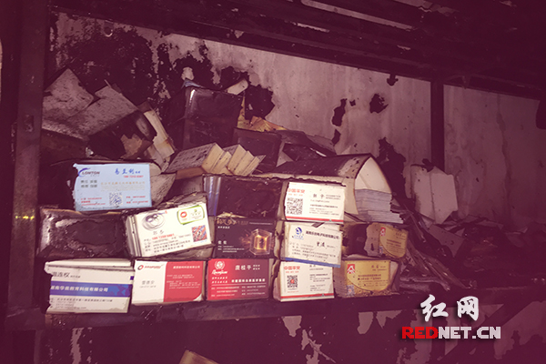 靠近门面,记者发现该楼栋一楼的打印店门面和广告店门面内物品均被烧毁,现场一片狼藉,且靠近事故现场约200米距离能明显闻到刺鼻的气味。