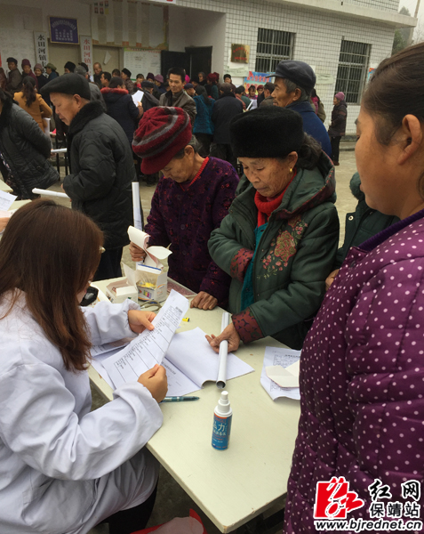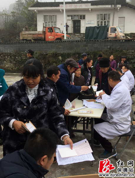 在丰宏村村民活动中心,县中医院组织医生、护士为村民体检,医护人员精心为村民测量血压、询问病情,讲解常见病的预防和治疗。