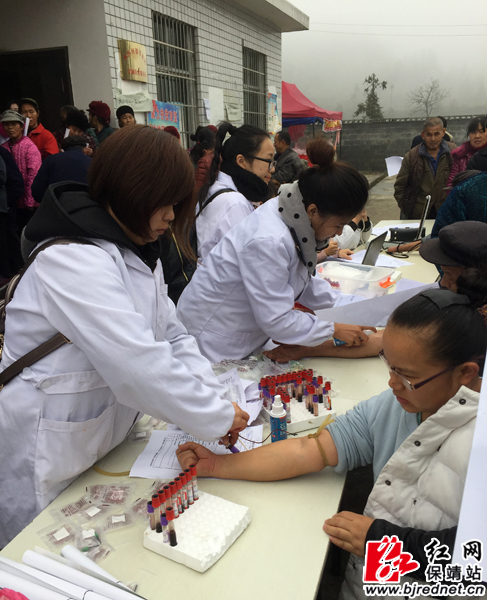 医护人员在给村民抽血检验。 杨再群 摄