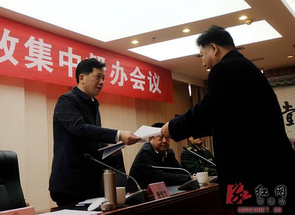 会上,9个区县(市)人民政府、常德经济技术开发区、柳叶湖旅游度假区、西湖管理区、西洞庭管理区分管负责人领取《市长督办令》,桥南市场、澧洲食品城、湖南广源麻业有限公司等重大火灾隐患单位报告火灾隐患整改情况和下一步工作打算,鼎城区、汉寿县、澧县人民政府分管消防工作负责人表态发言,33家重大火灾隐患单位递交火灾隐患整改责任状。