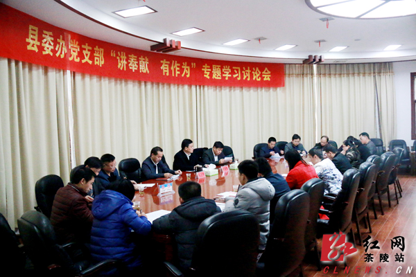 红网茶陵县分站12月16日讯(分站记者 刘雅 吴清远) 12月15日,茶陵县委办党支部围绕“讲奉献、有作为”主题,开展“两学一做”学习教育第四次专题学习讨论会。茶陵县委书记彭新军,茶陵县委副书记谢志军,茶陵县委常委、县委办公室主任马文平以普通党员身份参加讨论。
