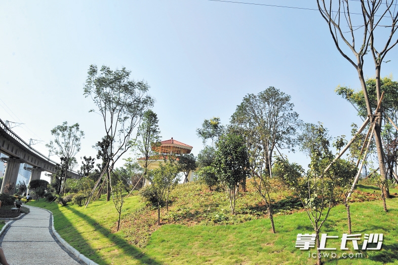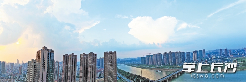 ↑在蓝天白云的衬托下,浏阳河边风景显得更加迷人。