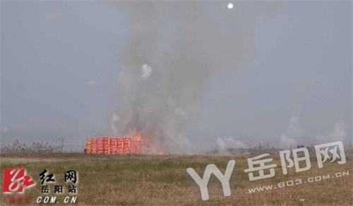 红网岳阳分站12月16日讯(分站记者 李婷 仇玉娇)“劈啪啪……”12月15日上午,湖南省岳阳市君山区柳林办事处长沟子村段海事施救码头下游500米草坪处,传来了震耳欲聋的鞭炮声,4160件非法烟花爆竹在此被集中销毁。这是今年来君山公安分局治安管理大队组织的第二次非法烟花爆竹销毁行动,也是近年来销毁数额最大的一次。