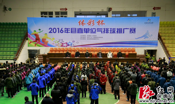 红网保靖县分站12月20日讯(分站记者 彭伟 张承印)12月19日上午,由湖南省保靖县人民政府主办,县总工会、县教体局承办,保靖县全民健身中心协办的保靖县“体彩杯”2016年县直单位气排球推广赛在保靖县杨霞体育馆拉开帷幕。县委常委、县委组织部部长阳文魁,县人大常委会副主任宋梦扬,县人民政府副县长梁文昌,县政协副主席龚曼华,以及县总工会、县教体局负责人出席开幕式。