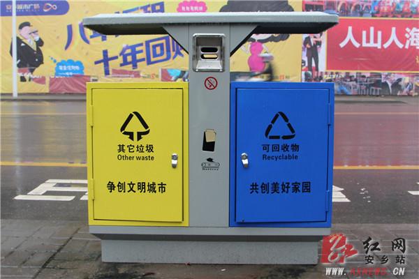 红网安乡县分站12月20日讯(分站记者 杨慧)“新式垃圾箱既时尚又实用,为安乡县街道增添了一抹亮色。”近日,不少“蓝卫士”与“黄卫士”陆续出现在湖南省安乡县城各大小街道两侧,吸引了众多市民朋友的关注,路过的都要多看几眼,回头率明显高了不少。