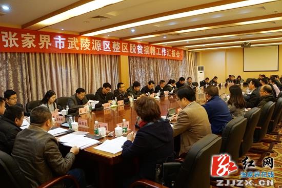 郑小胡在汇报中表示,武陵源区脱贫攻坚工作,严格对照贫困人口脱贫“一超过、两不愁、三保障”,贫困村退出“两个确保、两个完善”,贫困区(县)摘帽“一降低、一高出、一达标”标准,统筹安排、分步实施、踩准节点、逐一落实,保质保量完成了各项工作任务。其工作成效主要包括:加大贫困人口帮扶力度,贫困人口可顺利脱贫;加大产业和基础设施建设力度,贫困村可顺利退出;加大经济社会发展力量,贫困区可顺利摘帽。同时,武陵源区立足区情实际,精准把脉、精准施策,着力解决了“谁来扶”“扶持谁”“谁负责”“不会扶”“怎么扶”“再返贫”六大问题,做到了“精准滴灌”式扶贫。