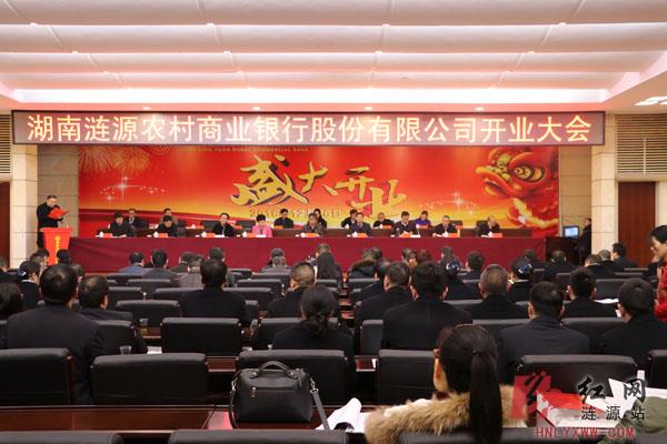 红网涟源市分站12月28日讯(分站记者 吴一夫)12月26日,湖南涟源农村商业银行股份有限公司开业大会在涟源宾馆小礼堂举行。湖南省农村信用社联合社党委委员、纪委书记余开生,娄底市委常委、副市长陈蕾,娄底银监分局局长胡润生,人民银行娄底中心支行副行长李泽军,涟源市委书记谢学龙,市委副书记、市长宋建明,市人大常委会主任梅国华,市政协主席贺顺清,市人大常委会副主任傅德贤,副市长李冰玉,市政协副主席邱超文及省、娄底市、涟源市多家金融机构负责同志出席大会。