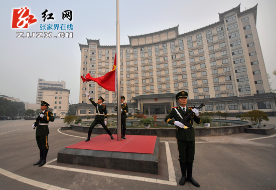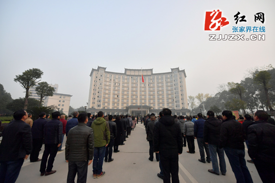 12月30日,张家界市政府机关隆重举行升国旗仪式,庆祝元旦,迎接新年。