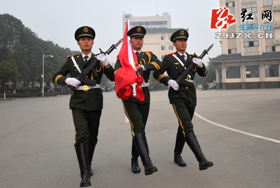 上午8时,武警官兵队员精神抖擞地迈着正步,护卫着五星红旗来到市政府机关大院的旗杆下。