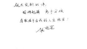 “祝大家新的一年:闻鸡起舞,勇于突破,夺取属于自我的人生冠军!”龙清泉的字体圆润,和他的娃娃脸一样可爱。“字写得不太好,不要嫌弃哦。”他的笑容依旧腼腆。