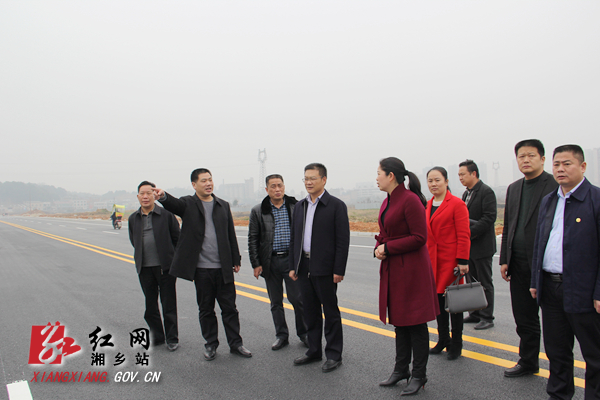 湖南省湘乡市委副书记、市长周俊文(左四)一行在人民路西线视察。