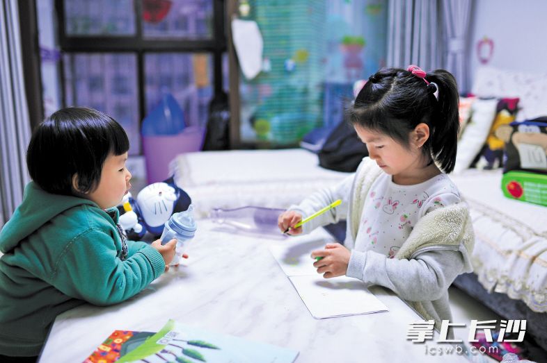 目前,长沙不少家庭已经迎来了第二个孩子。有了两个孩子,家里的欢声笑语更多了。长沙晚报记者 王志伟 摄