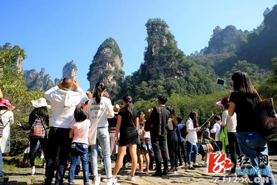 张家界核心景区武陵源游人如织(吴勇兵摄,2016年)