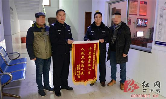 红网常德分站1月10日讯(通讯员 熊飞)1月6日上午,湖南省常德市桃源县漳江镇居民熊某和其朋友王某,将一面代表着自己心声的写有“人民卫士为人民,千里奔袭救人质”的锦旗送到了漳江派出所,向该所民警鞠了三躬表达感谢。1月9日,桃源警方对外通报该案相关情况。