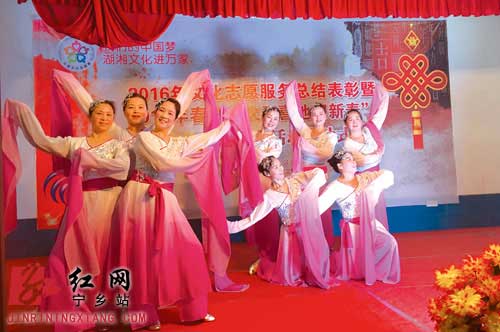 红网宁乡县分站1月11日讯(分站记者 刘淑兰)1月9日,湖南省宁乡县煤炭坝镇敬老院里人声鼎沸,热闹非凡,2016年宁乡县文化志愿服务总结表彰暨2017年春节“欢天喜地闹新春”文化志愿服务活动启动式在这里隆重举行。一批优秀志愿服务团队和个人受到表彰,200多名文化志愿者和敬老院老人一起参加了活动启动仪式。