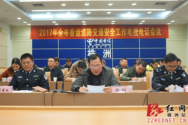 株洲市公安局副局长彭冬明主持会议,市公安局交警支队支队长黄耀斌宣读了《全市春运期间道路交通安全保卫工作通知》。