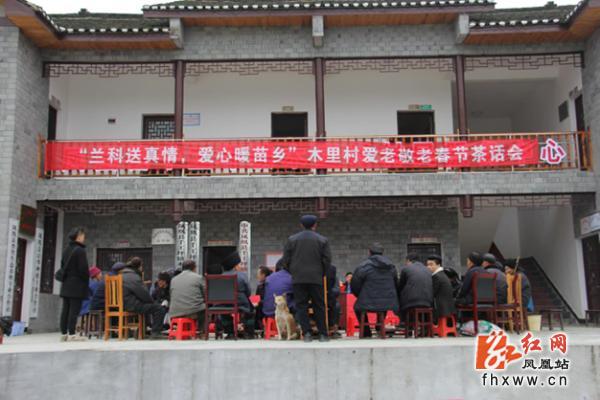 红网凤凰县分站1月16日讯(分站记者 龙珍 通讯员 彭梓峰)欢声笑语辞旧岁,开拓奋进迎新年。1月16日,湖南省凤凰县千工坪镇木里村举行“兰科送真情,爱心暖苗乡”爱老敬老春节茶话会活动,村里80岁以上的老年人欢聚一堂,共迎2017年新春佳节。