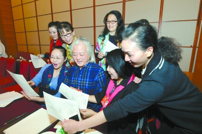 1月16日上午,分组讨论会后,一些政协委员和与会工作人员听说毛光辉委员(前排左二)生肖画得好,想邀请他画鸡年生肖画。毛光辉委员爽快地答应了。他就地取材,用圆珠笔画起鸡年速写画,祝福大家鸡年大吉,万事如意!湖南日报记者 田超 摄