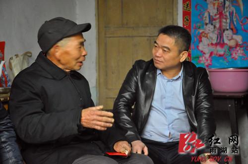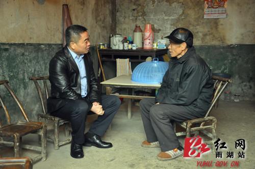 今年70多岁的胡少桂老人是原杨梅村干部,服务基层30多年了。老人膝下有三个儿子,大儿子在村口开小卖部,剩下两个儿子因为癌症去世了。提起这件事,老人数度落泪。“您养老金多少,身体还好不?”王永红和老人拉起了家常。王永红感谢胡老一直以来为基层作出的贡献,希望老人健康长寿并送上了慰问金。