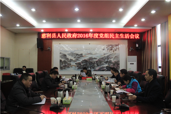 红网慈利县分站1月22日讯(分钟记者 全江玲)1月21日上午,慈利县政府党组召开2016年度民主生活会议,县委副书记、县长高靖生主持会议。副县长朱超雄、李新龙、李勇、屈辉、谢模强、朱新、满金华、王大云及党组成员、监察局局长朱云参加会议。