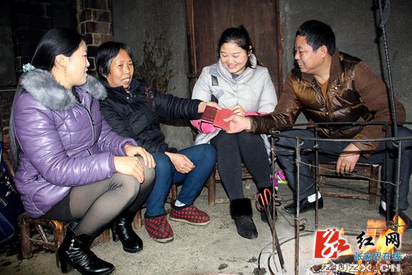 红网张家界分站1月24日讯(通讯员 王健 李云洲)“你们工作这么繁忙,还热心地将《光荣证》和奖扶金送到我家里来,我出自内心地感谢党和国家好政策,感谢你们卫计办对群众的热情服务。”1月23日,在慈利县甘堰土家族乡甘堰村14组见到,乡卫计办工作人员上门为2016年新增计生奖扶对象宋贤英送发《光荣证》和奖扶金,宋贤英激动不已,连声道谢。