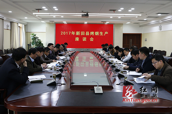红网新田县分站1月24日讯(分站记者 钟伟锋)1月23日,湖南省新田县召开2017年烤烟生产工作座谈会,传达永州市烤烟生产工作会议精神,学习新田县关于抓好烤烟生产工作落实的实施意见,与会人员就抓好今年的烤烟生产进行深入座谈。新田县委常委、常务副县长王名扬出席会议并讲话。