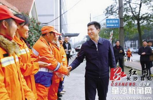 1月25日,长沙经开区党工委书记、长沙县委书记曾超群看望慰问坚守岗位的环卫工人,向大家致以亲切的慰问和节日的祝福。曾诗怡 摄
