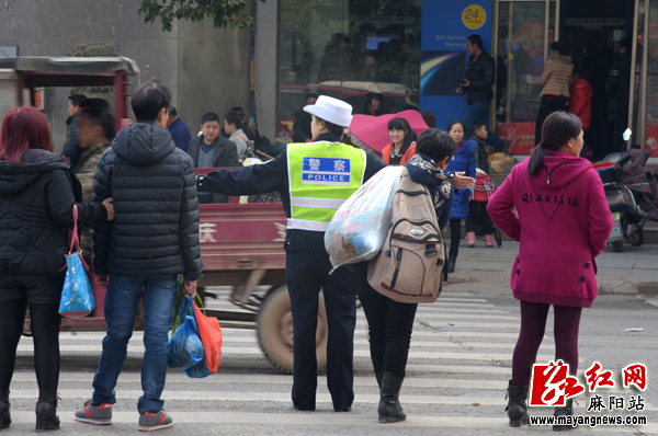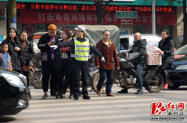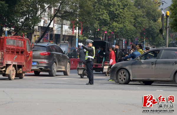 红网麻阳县分站1月28日讯(通讯员 滕晖)1月26日12时30分,记者在湖南省麻阳县城五一东路和富州南路交叉路口看到,七位交警正在执勤。虽然正值县城中午下班高峰期,车流和人流川流不息,但由于有了交警们认真、细致地指挥、疏导交通,该交叉路口秩序井然,没有出现交通拥堵的现象。