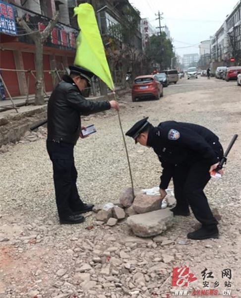 在步步高超市附近,路面一块涵洞大石块被挪动,涵洞严重漏出地面,随时给过往车辆和行人带来车毁人伤的后果,巡逻民警杨复久带领民警齐心协力将大石块扶正,还设立了警示标志,保障了过往车辆和行人的安全。大年初四,民警辛树亮等巡逻民警帮助茶楼喝茶的客人寻找手提包,在雨夜寒风中坚守了3个多小时。