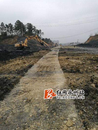 零陵南路,初六复工,平整压实路基。
