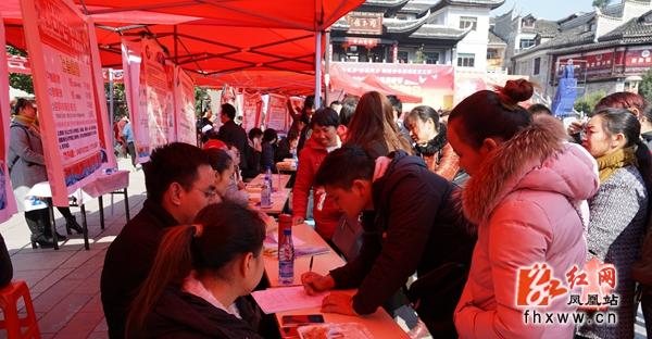 为搭好劳务输出平台,助推精准脱贫工作,凤凰县做好县内外企业和省内外企业入驻登记、企业招聘条件、工资待遇等情况统计,做好基层工作,发动干群大宣传,在县城小憩公园LED显示屏上滚动播放招聘会信息,做实春风行动大型现场招聘会前期工作,使得凤凰城乡童叟皆知妇幼皆晓,有意求职者有备而来找到如意工作岗位。同时,招聘会上转移就业脱贫工程、失地农民生活保障、“四险”、劳动维权、就业创业、人社法律法规等相关政策咨询人群也络绎不绝。
